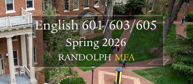 Esta página es: General type: incourse. Context Curso: ENGL6601/6603/6605AS2026 ENGL6601/6603/6605A: POETRY, FICTION, NONFICTION WORKSHOP (SPRINGM 2026) (context id 429558). Page type course-info.